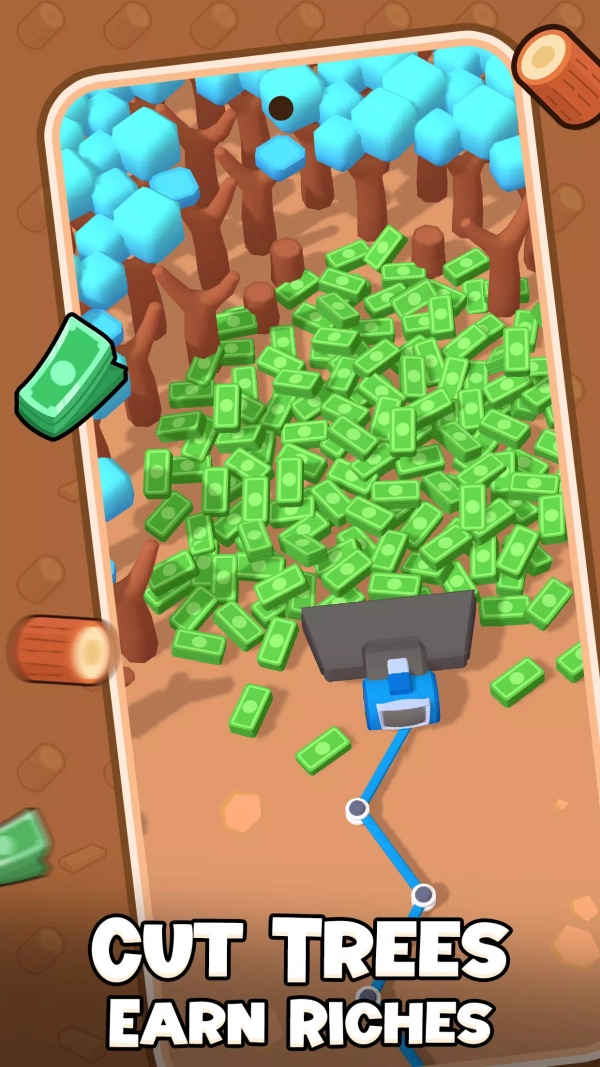 这是一款以伐木为核心主题的经营模拟类游戏,玩家将化身为一名伐木工,借助对伐木机械的操控来开展资源采集工作,并推动经营规模的拓展。