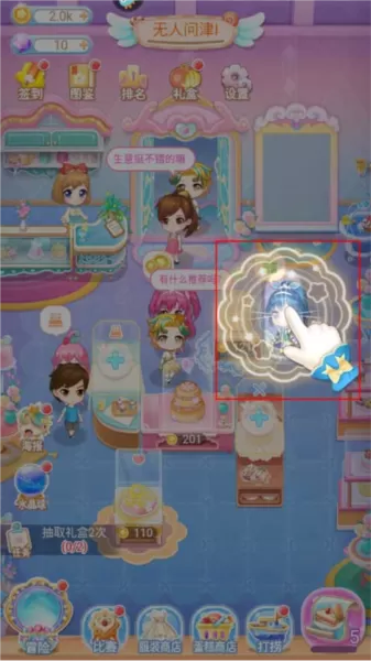 当顾客出现在已有的蛋糕橱窗口时,点击他们就能购买蛋糕并获得金币,有时候还能获得制作蛋糕的材料。