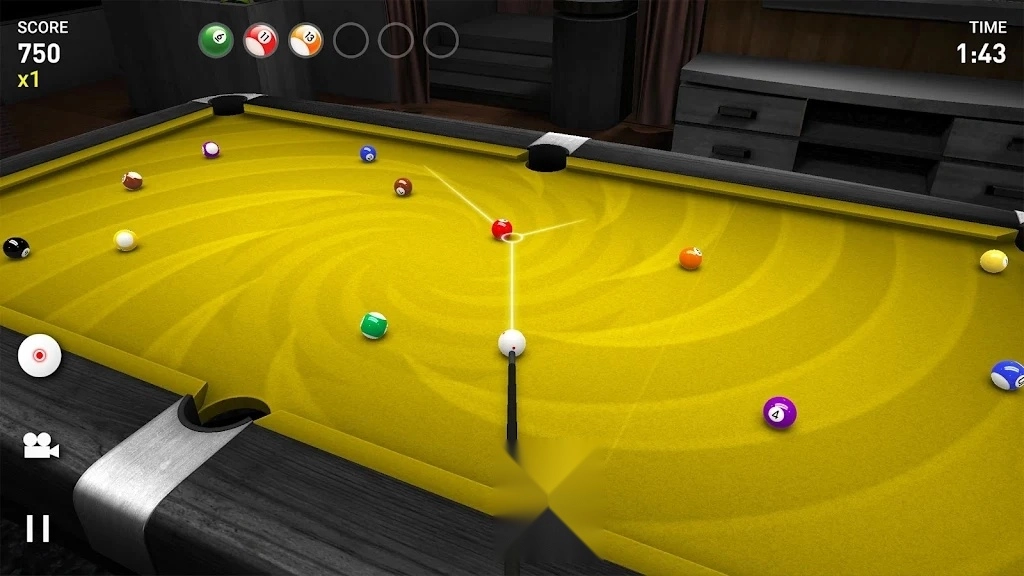 角度校准:双指缩放调整视角,预判碰撞点,白球与目标球成30度最佳。