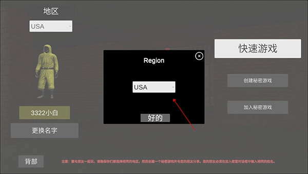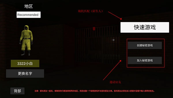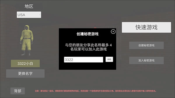 “快速游戏”指的是与随机玩家进行匹配,若想和朋友一同游玩,选择“创建秘密游戏”即可创建房间。