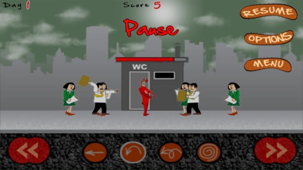 游戏启动后,左右两边会持续出现敌人想要冲向厕所,得赶紧拦住他们,别让他们进去。
