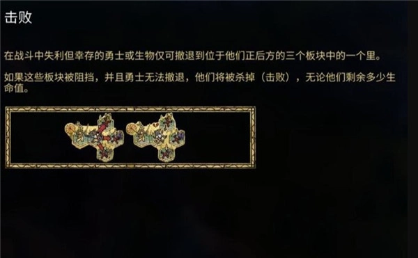 在战斗中失利的英雄,只能撤退至该地块相邻的后方三个地块中的任意一个。