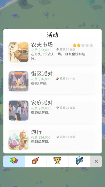 在活动中选择可以开设的活动,例如农夫市场