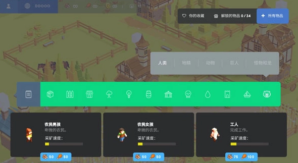 进入世界后打开建造栏,按照你的想法来创造生成各类建筑设施、动植物以及人口。