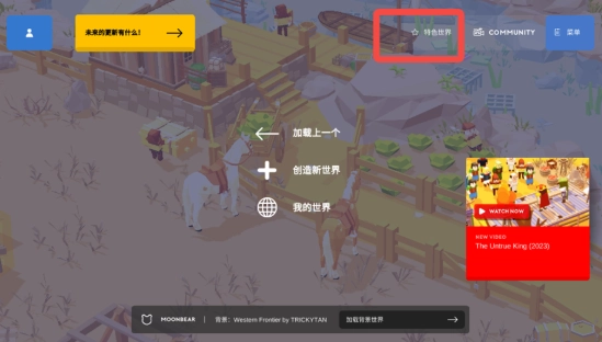 在游戏首页,点击【特色世界】。