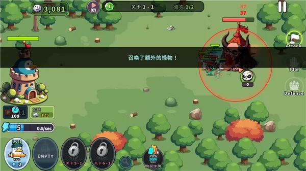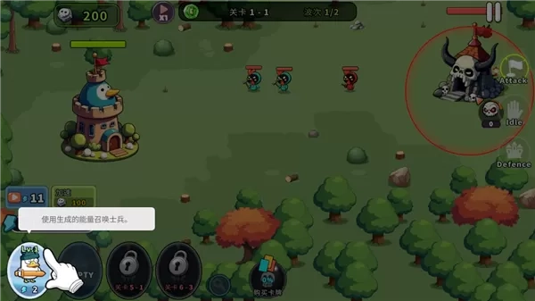 - 收集行动力,生产鸭子士兵来击败怪物!