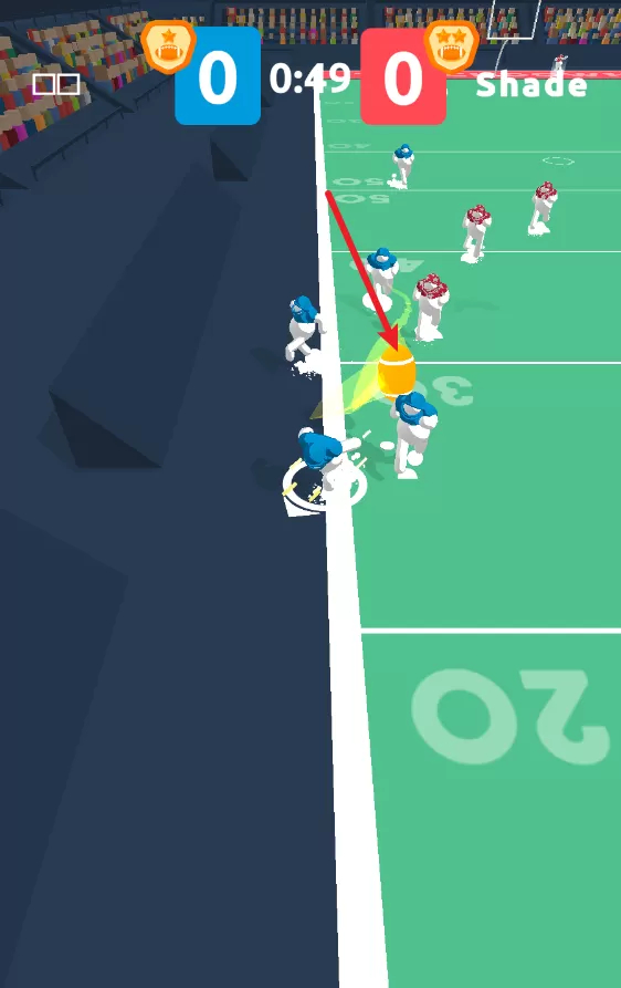 3、当拿到橄榄球,就要朝着对方球门奔去,把球放置在球门后方就能得分。