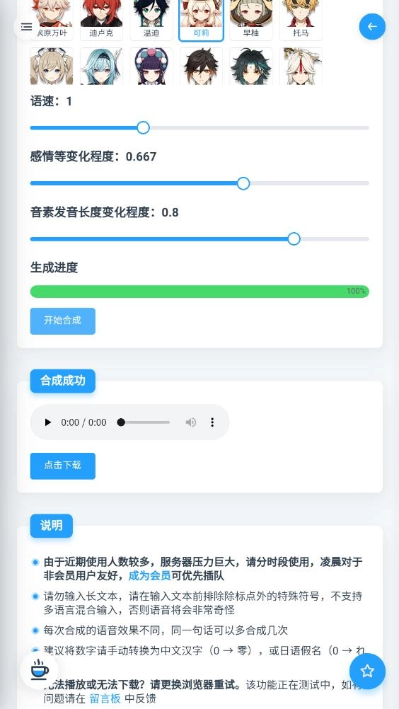 每次使用语音合成功能都特别方便,还能生成不同游戏角色的声音。