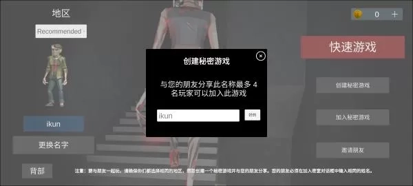 3、如果朋友没有创建房间的话,我们之间点击创建秘密游戏。