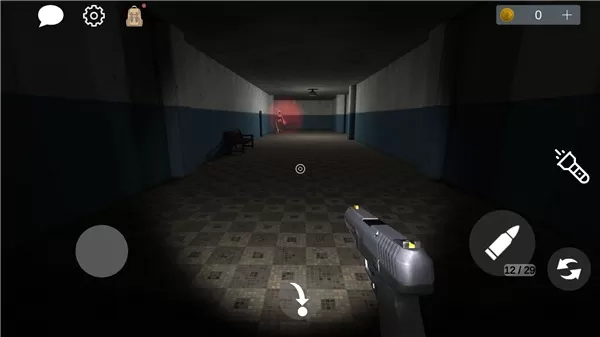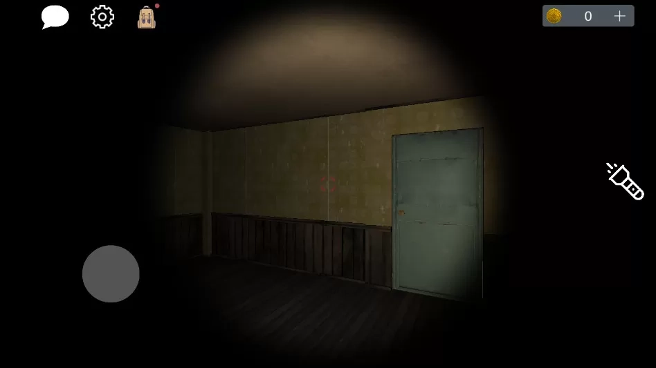 4、进入游戏,点击物品便可拾取,在初始状态,玩家拥有手电筒(可关闭),左上角分别是来聊天、设置、以及背包,用于游戏中收集线索道具;