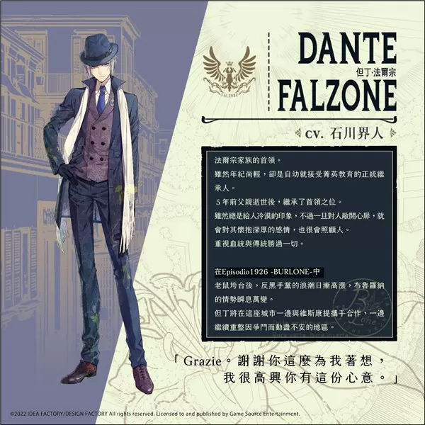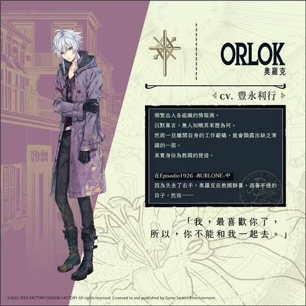 《虔诚之花的晚钟 1926 中文版》(ピオフィオーレの晩鐘 -Episodio1926- ),这是一款由 Otomate 负责开发、Game Source Entertainment(GSE)负责发行的乙女向恋爱冒险游戏。在 2025 年 12 月 12 日,其繁体中文版正式推出,并登陆了 Nintendo Switch 平台。 该游戏的背景设定在 1926 年的意大利布鲁罗纳,这座城市由于黑手党势力的兴起,正处于动荡不安的状态。玩家在游戏中将会扮演一位普通女性,从而卷入黑手党之间的权力争斗以及各种神秘事件当中。 作为《虔诚之花的晚钟–ricordo–》的后续作品,此游戏承接了前作的结局。讲述主人公在经历“布鲁罗纳事件”后,暂时过上了平静的日子,然而新的危机却在悄然降临。玩家需要与黑手党成员一起,对魅影录制的“杀人预告”以及“谜题”展开调查,进而揭开隐藏于黑暗中的真相。