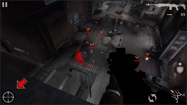 在《杀手2:影子阴谋》手机版的游戏开局,我们会置身于天台之上,并且处于隐蔽状态。当点击右侧带有盾牌图案的箭头图标时,主角就会起身并离开掩护位置。