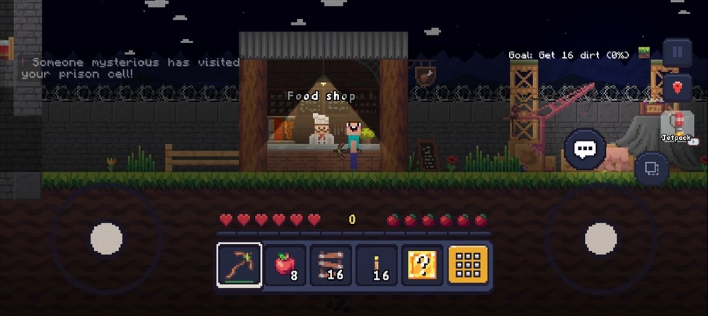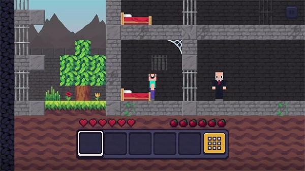 游戏采用像素方块风格的画面,监狱矿井场景不仅广阔,而且是随机生成的,每次探索时资源的分布情况都有所不同。