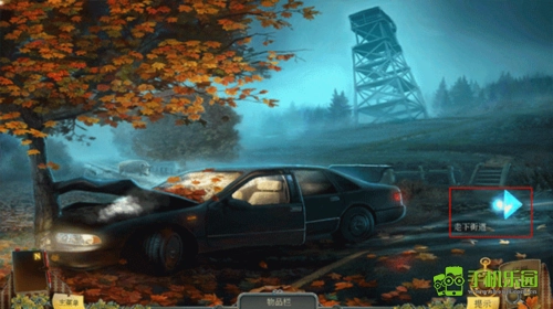 我们用车钥匙打开车子的后备箱,发现里面又是一个寻物游戏。完成游戏后拿到了断线钳,接着向右走,前往下一条街道,再穿过那座桥。