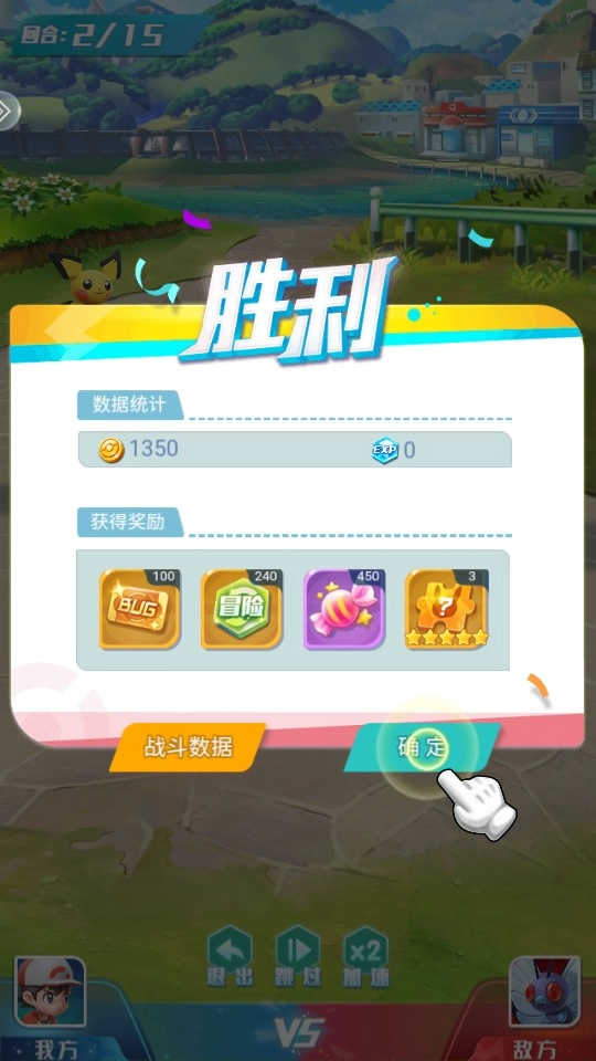 使用自动战斗功能打完仗后,点击确认战斗结果,然后领取对应的奖励。