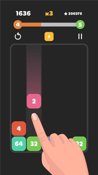 玩家需要把这些方块按完全相同的条件进行合并,以此得到更大的数字。