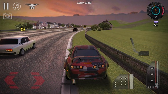 6、操作方式相对的简单,通过点击虚拟按钮就能驾驶。