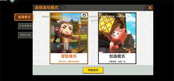 2、在首页点击开始游戏,创建一个新的世界选择冒险模式进入到游戏之中;