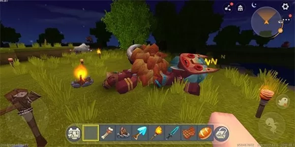 8、当夜幕降临时,我们需要将火把点燃在,这样我们才能看清附近的状态;