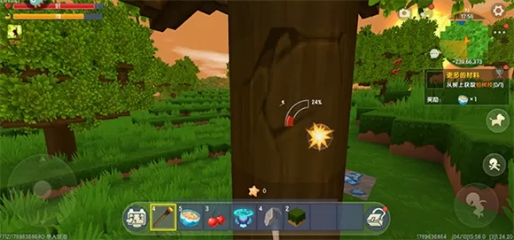 7、从树上获取细树枝,完成这个任务需要先来到树木旁边,通过砍树获取相应的细树枝;