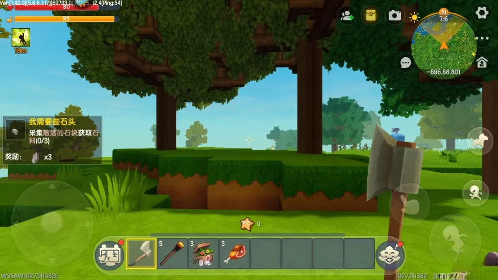 5、找到材料之后,将游戏视角移动到石头上,然后长按石头,就可以自动获取材料了;