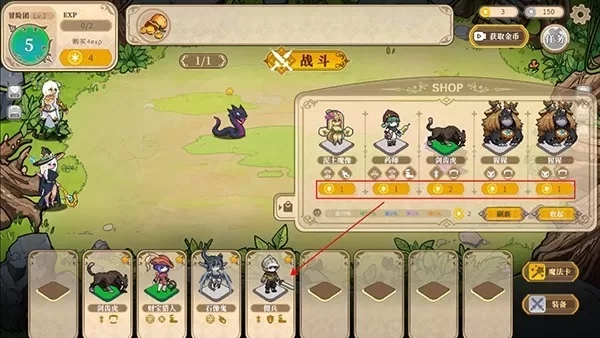 3、在游戏的右侧可购买棋子,三相同棋子可合成升级。