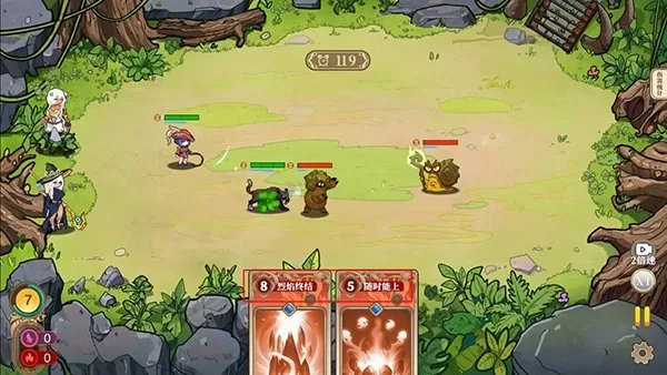 5、战斗开启后,双方会自动展开对决,此时可点击卡牌来释放技能。