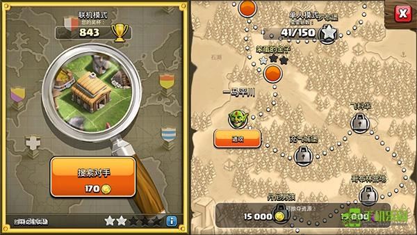 战斗地图包含对抗赛、单人模式、联机模式等类型,玩家可以在村庄地图的左下角找到“进攻”图标,点击后即可进入对应的战斗地图。不过玩家进入这些对战地图需要满足特定的前提条件,比如等级限制、参与人数要求等。