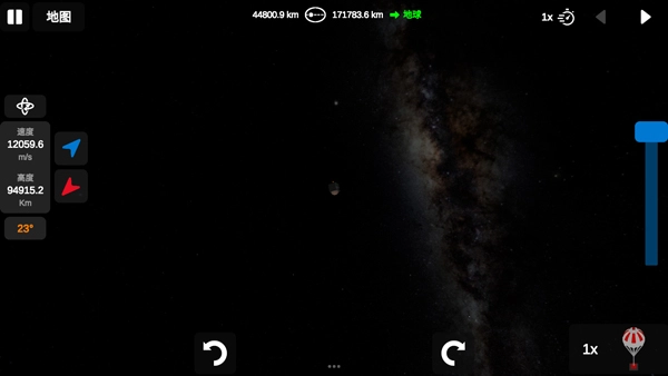到达一定高度后,还需要再次点击1x,以此模拟火箭发射时舱体掉落的过程。