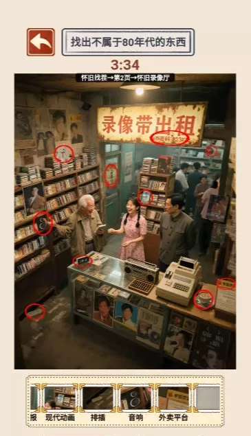 年代错位大侦查:置身于80年代的家庭场景之中,要从中找出类似微波炉、无线耳机这类现代家电产品;而在90年代的校园画面里,则需识别出平板电脑、智能手表等不属于那个时代的物件。每个场景精心设置3 - 5处时代错位之处,只要将它们全部找出来,就能成功解锁下一关卡。