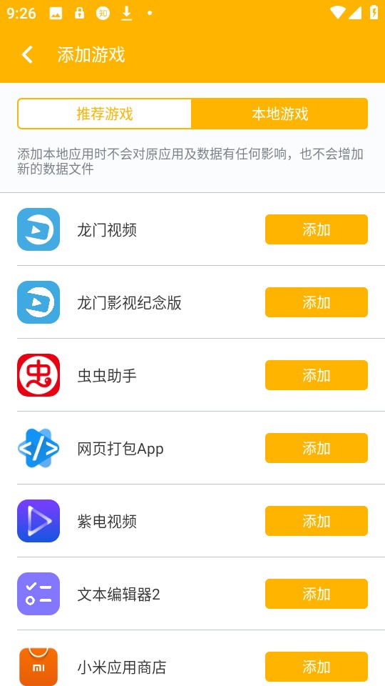 6、此刻,打开App,轻点“添加游戏”按钮,接着从“本地游戏”里挑选您想添加的游戏。