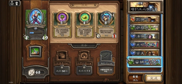 咱们工人有力量组合:凯瑞尔·罗姆、剑圣、泽瑞拉、光明之翼、古夫、安娜科德拉。