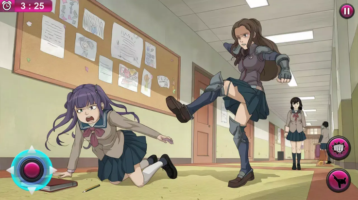 在这款活力四溢的学校模拟器里,勇敢的女主角需于强敌环伺的高中寻得出路。助力她在热血的漫画风格战斗中挣脱对手掌控,在这场惊心动魄的冒险中存活下来!完成各个关卡,解锁全新挑战,感受虚拟校园生活的起起伏伏。