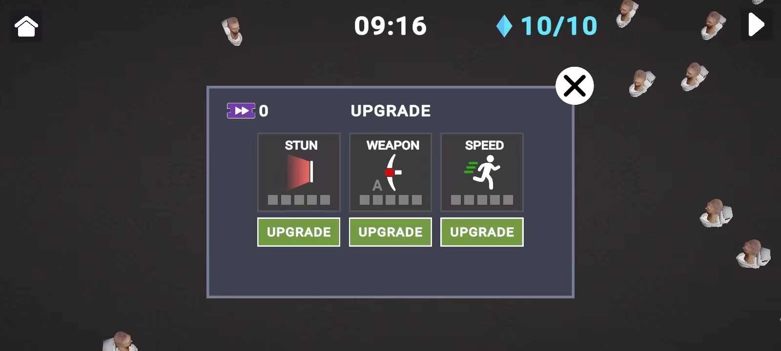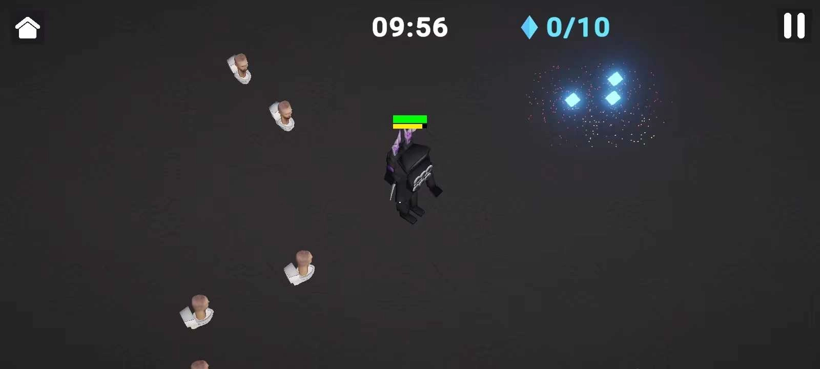另外两种游戏玩法和《吸血鬼幸存者》有些相似,玩家要消灭周围不断出现的马桶人,得留意别让马桶人靠近自己,不然就会损失生命值。