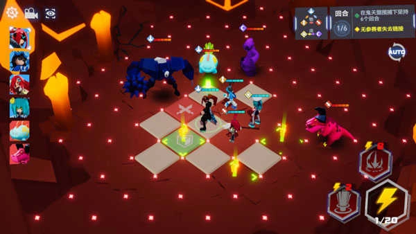 进入战斗状态后,左上角会呈现参赛者与敌人的行动次序,右下角为元力值及技能,右上角则是关卡任务与剩余的战斗回合数。整个战场会划分成多个小地格,天使们需指挥参赛者在这些地格之间移动、排兵布阵,在限定回合内战胜所有敌人。