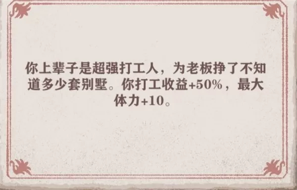 在低光环的情况下,属性不足,打工收益较低。狩猎之王可以在前期快速获得金钱,购买需要的物品。