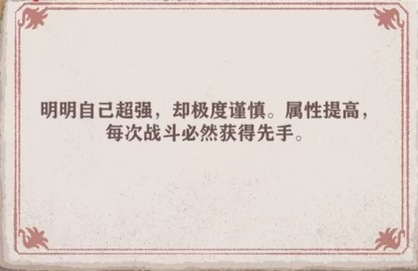 低光环情况下比较好用,提供的属性可以通过大部分剧情事件,对前期的战斗也有不小提升,使过渡更加平滑。