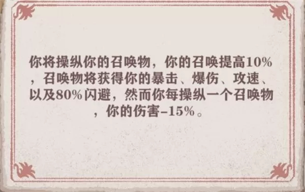 装备词条:回复,闪避主要技能:闪避类型,召唤类型