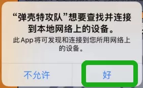 4、进行联机操作时,需要您同意游戏连接到本地网络中的设备。请检查您移动设备上游戏的[本地网络]权限是否已开启(务必确保您的移动设备在局域网内能够被访问到)。