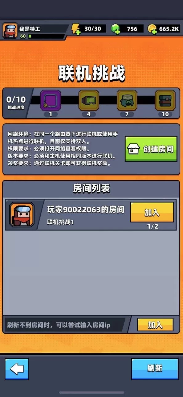 ***特工与搭档需要处于同一个Wifi环境下或者处于热点连接中,才可联机作战。