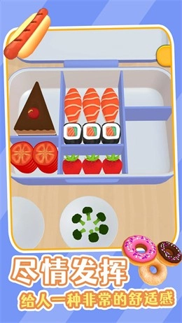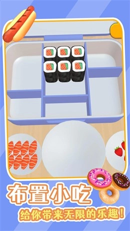 《美味的便当》是一款超有趣的休闲模拟经营类美食游戏!你可以用各种各样的食材自由创作,随时在游戏里秀出你的厨艺,把做好的便当打包起来。在这里,你不仅能体验制作便当的趣味玩法,还能解锁新工具,一起享受美食带来的快乐吧!