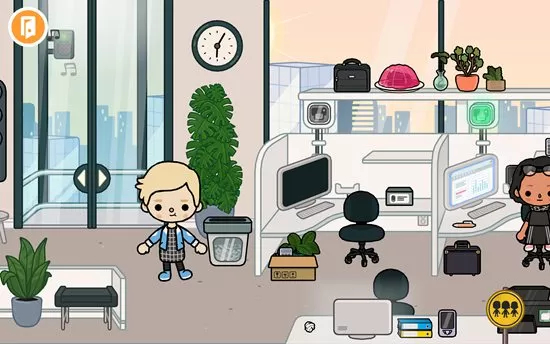 2、我们随便点击一个大楼即可进入其中,例如我们选择商业用楼,进来后发现里面是一间办公室,可以看到很多办公用品,还有很多工作的人员。