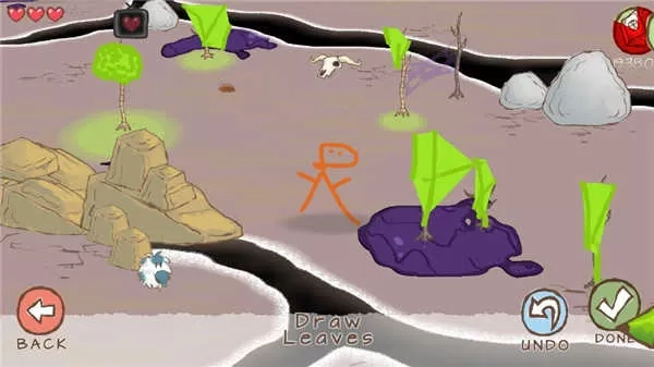 3、简单来讲,下方的树叶画笔就是你的武器。在干枯的树枝上绘制树叶,便可获得重生,还能消灭即将现身的怪物哟。
