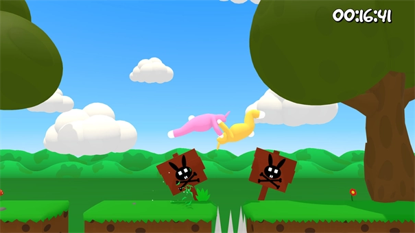 超级兔子人是一款魔性又虐心的趣味双人联机游戏。玩家可操控不同形象的兔子人,在布满障碍物的关卡中展开冒险挑战,沿途的道具能帮助你轻松避开陷阱,完成任务后还能解锁更多关卡。体验跳跃、滚动等技能带来的魔性玩法,在冒险途中收集更多胡萝卜,解锁各类成就奖励,让游戏过程更轻松,横屏双指操控也十分简单。