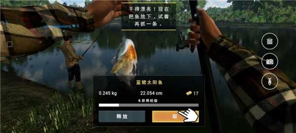 右侧的操作键是用来完成抛投动作的,在找准目标点后轻触它就能释放钓组,而落点的精度会对后续的咬钩概率产生影响。