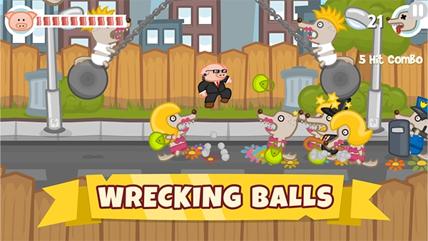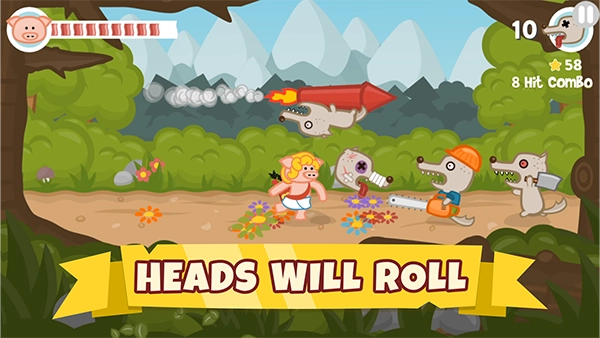 你可以用灵活的手指轻敲屏幕,让狂暴状态下的角色施展小猪功夫动作,以此来击败成群的狼。