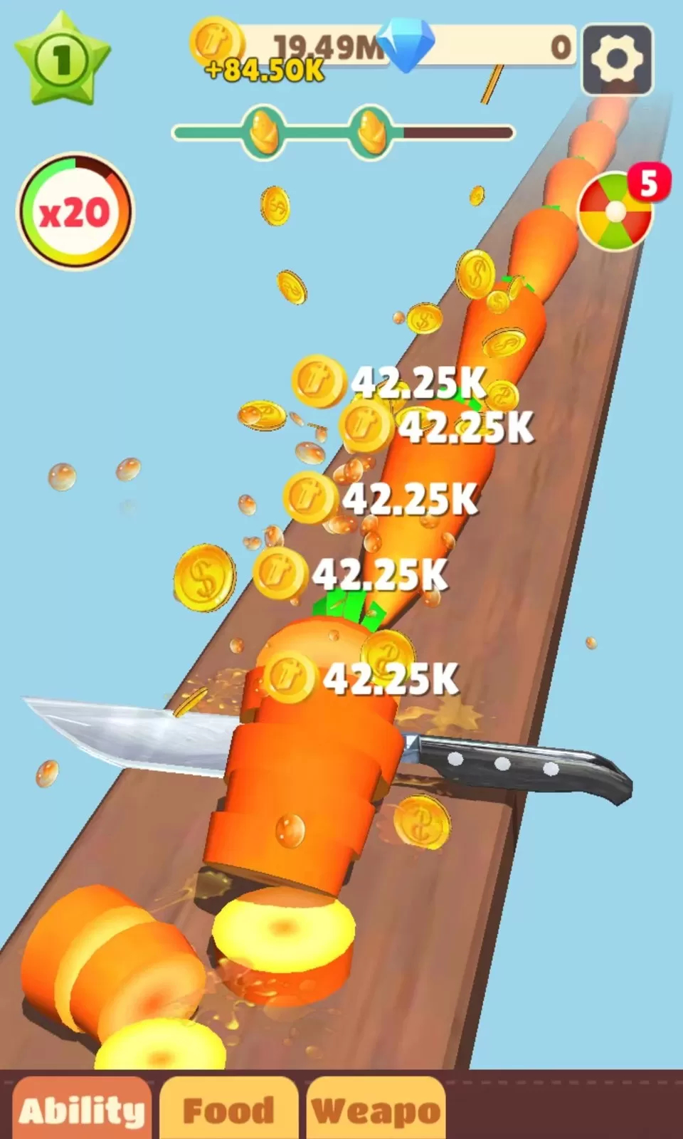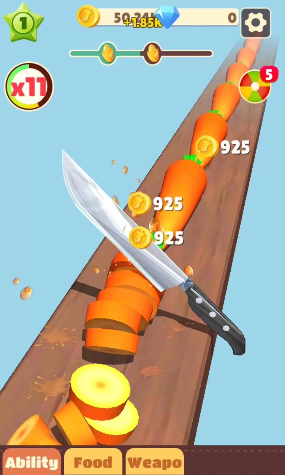 4、完成关卡获取的金币可以用来购买更加锋利的刀具,让你能够在接下来的挑战之中更顺利的完成挑战。