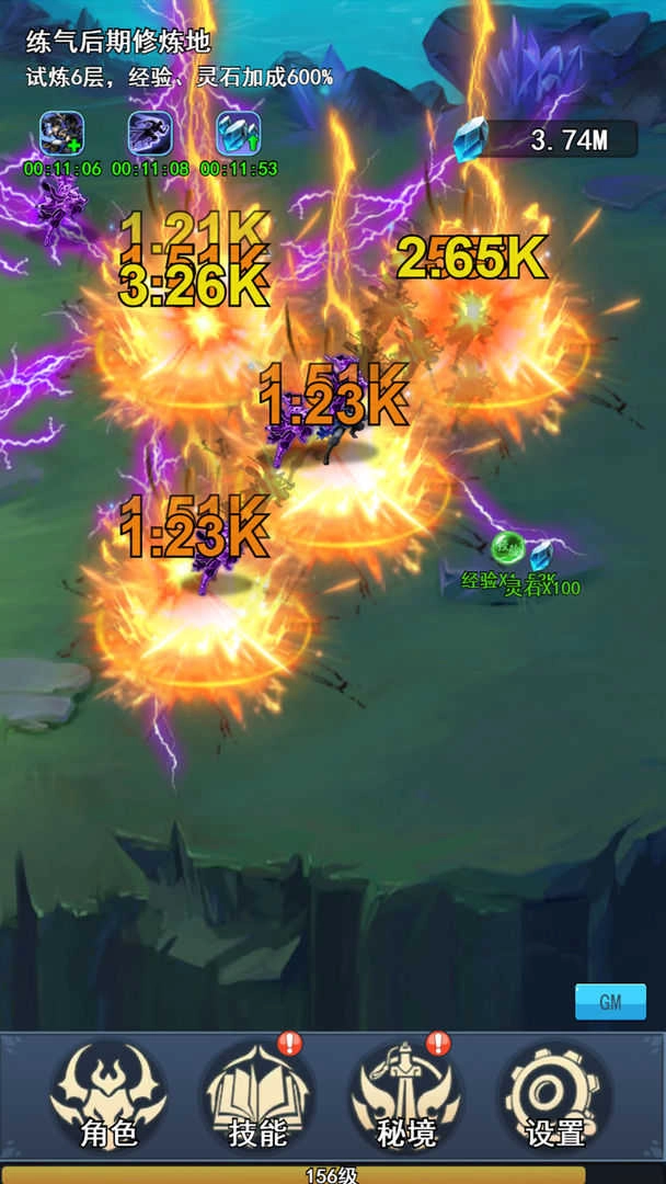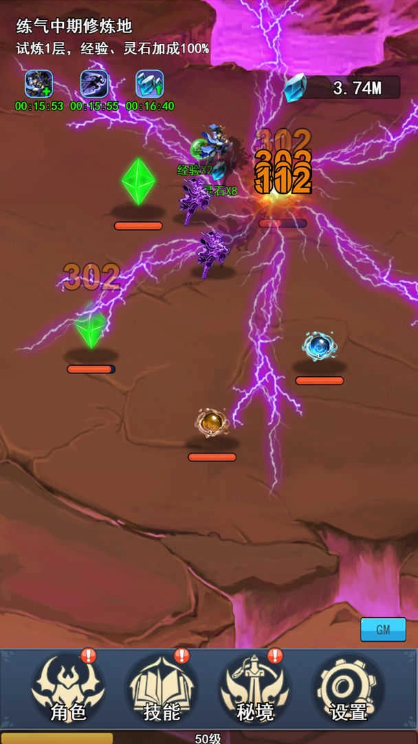 第一点,和肝帝玩法里的第一条大致相同,但不用开启自动突破——练气期的9龙是最好打的,只要每天在线挂机打9龙(9龙会掉落两种宝石,用来升级灵石矿脉和聚灵阵),大概一天能把聚灵阵等级提升1.5万左右。注意得在线挂机,离线是不算的,挂个一天半到两天左右,就可以继续下一步了。