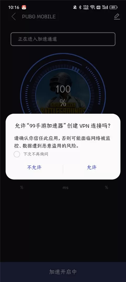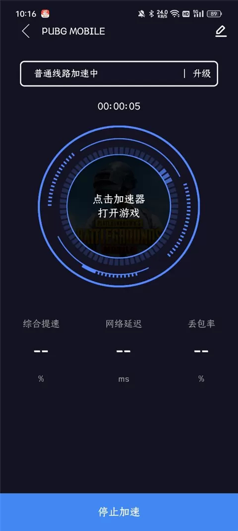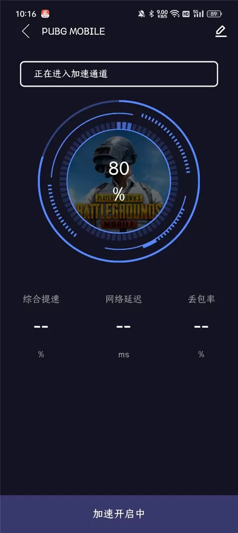 1、用户先安装相关游戏,直接点击加速,这里用PUBG做示范。