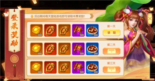 来自五湖四海的主公们齐聚这场饕餮盛宴,身为东道主的小乔当然要为各位准备一份小小的心意。活动期间,主公每日登录就能领取功绩500、野生香菇200、元宝666、择贤令1个和择贤举善令1个。